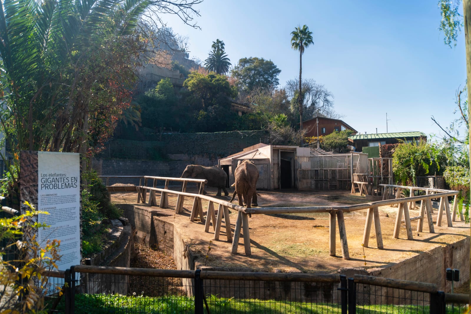 Protea y Jumbo, de 38 y 39 años, son los últimos elefantes en cautiverio en Chile. Llegaron a Santiago en 1991 producto de una donación de la República de Sudáfrica al Zoológico Nacional, siendo aún crías. Desde entonces, individuos de una especie que puede caminar fácilmente 10 km al día han habitado un recinto de 993 m².
